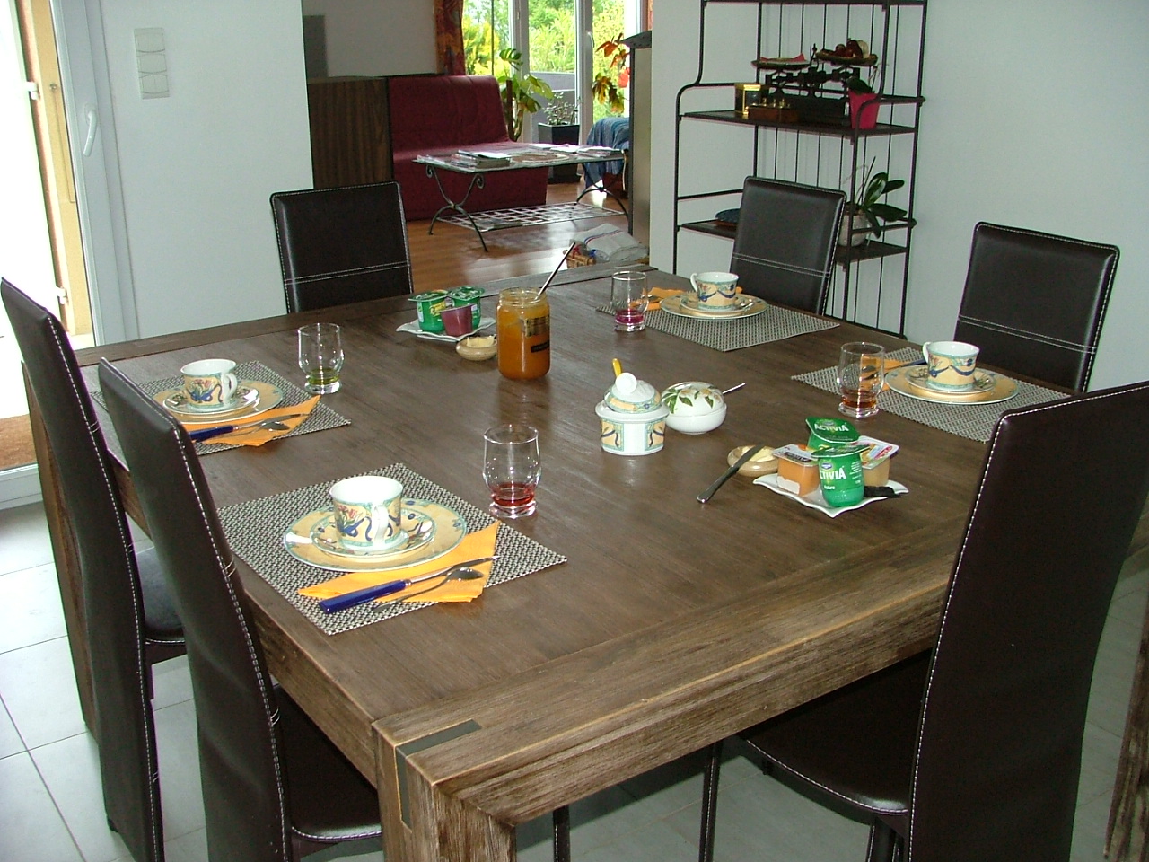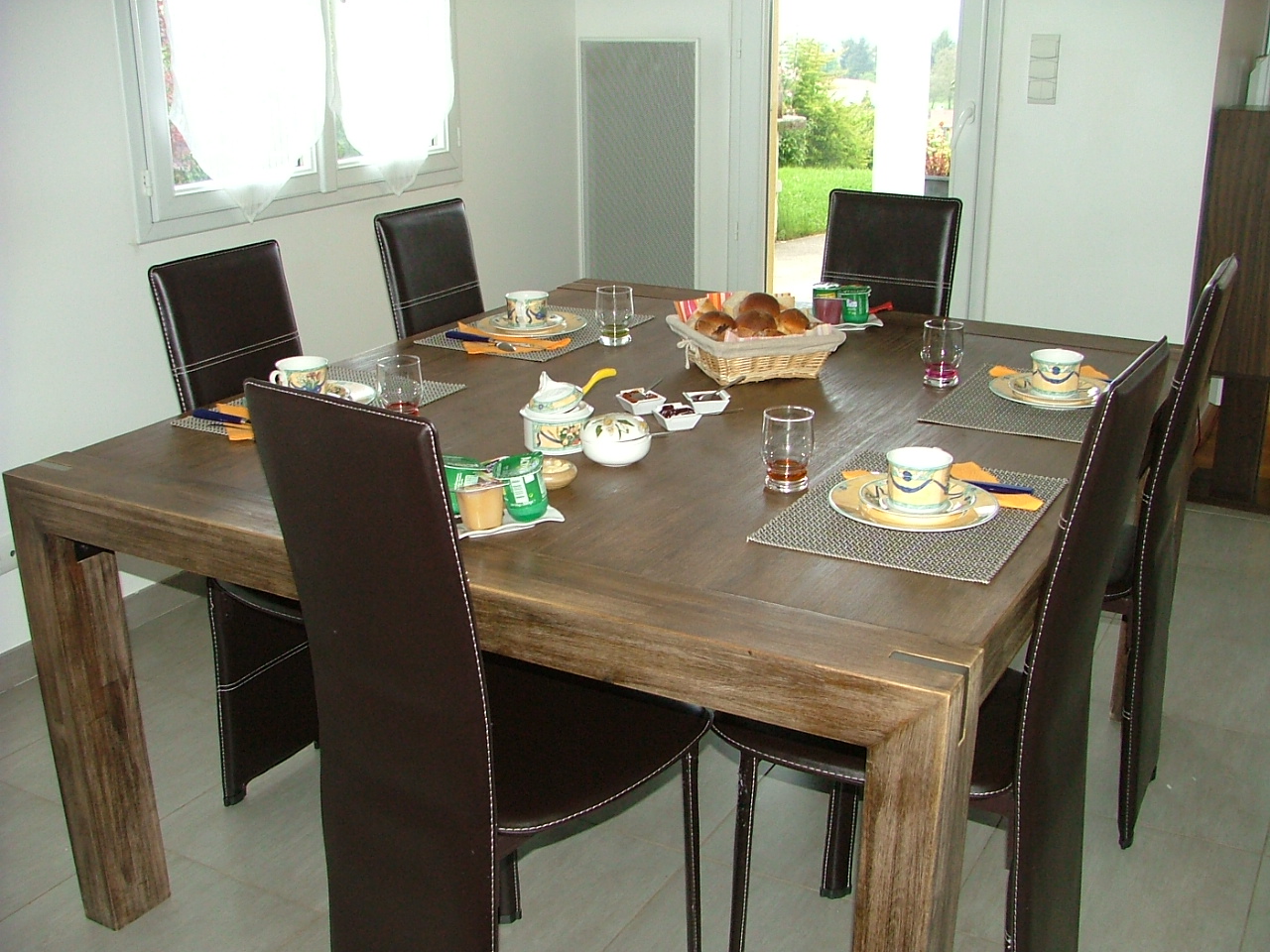 A la belle saison, les repas seront pris sur la terrasse avec vue panoramique sur les monts du Lyonnais et du Bugey.